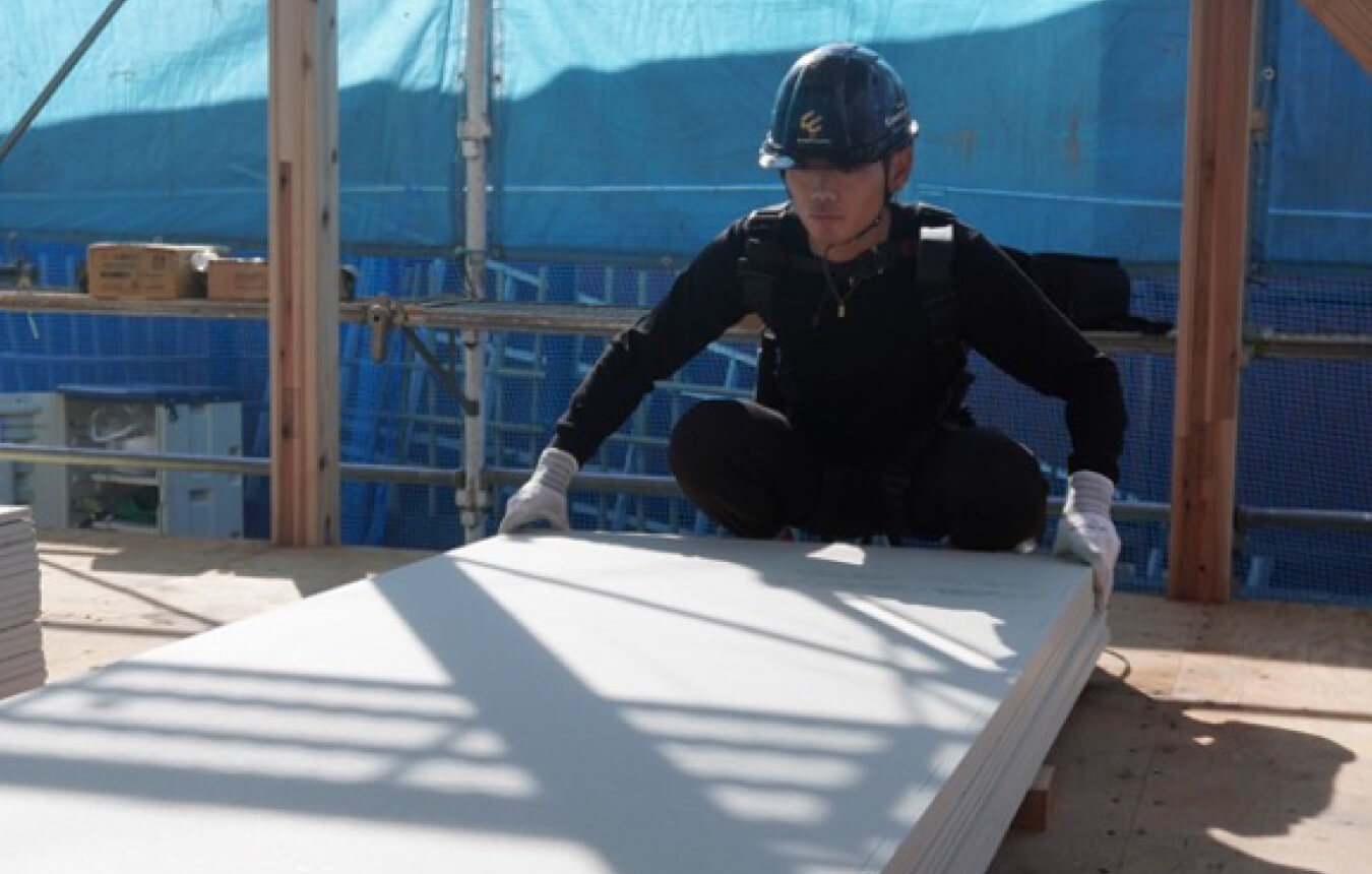 建設許可がおりたら工事着工。仕入れは創業より協力関係にあるプレカット会社や複数の卸業者などと連携し、施工は経験豊富な職人を手配で、安心の施工体制。